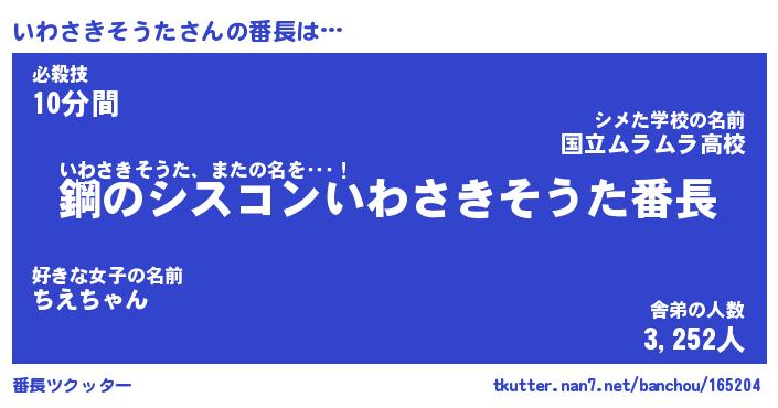 | 恥ずかしいあだ名 | 『プリティーいわさきそうた』『いわちん』 |