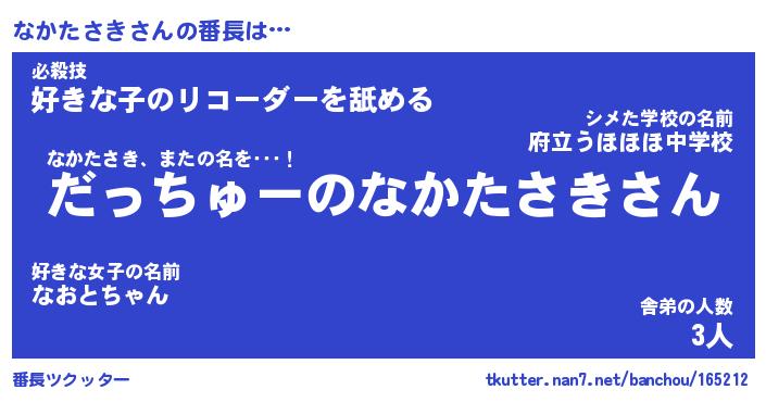 | ヒーロー風カッコイイあだ名 | 『スーパーナカタサキ』『幻影騎士ナカ』 |