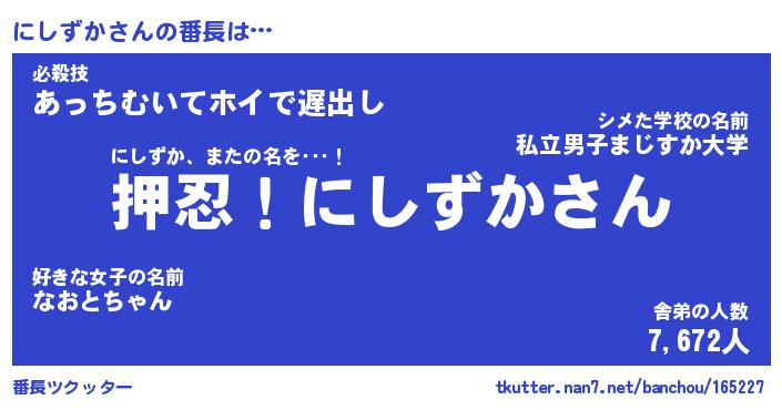 | ポケモン風あだ名 | 『ニシチュウ』『ニシズダネ』 |