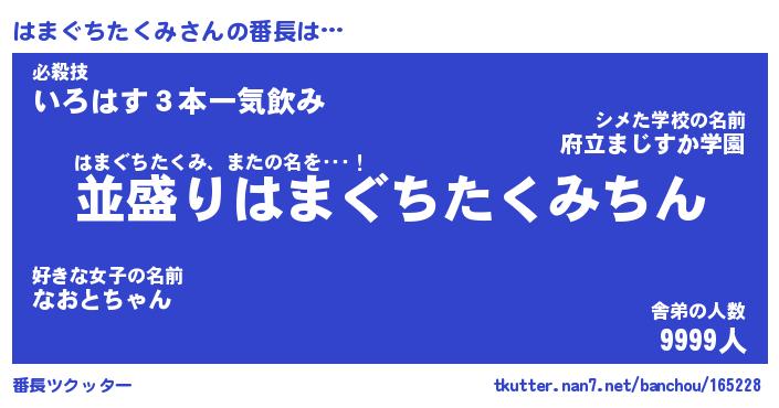 | ヒーロー風カッコイイあだ名 | 『スーパーハマグチタクミ』 |