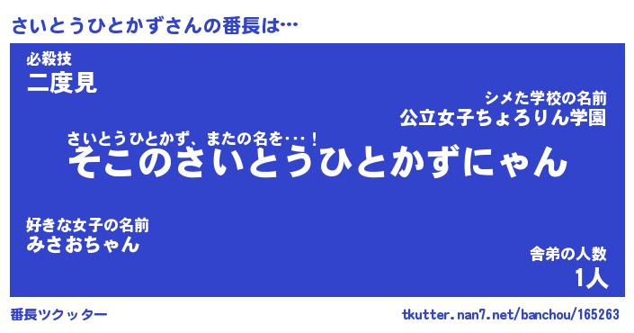 | 肩書あだ名 | 『さいとうひとかず社長令嬢』 |