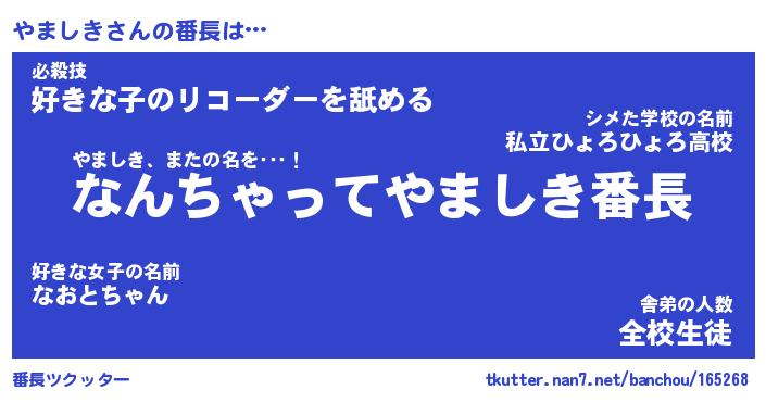 | 意味不明あだ名 | 『ペロリンやましき』『永久保存やましき』 |