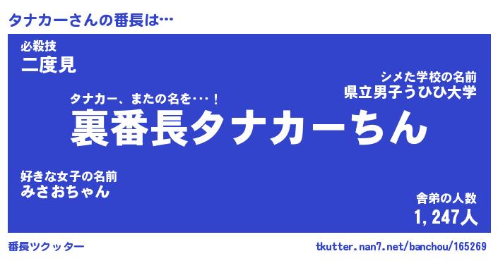 | ファンタジー風あだ名 | 『タナフェル』『エターナルタナカーー』 |