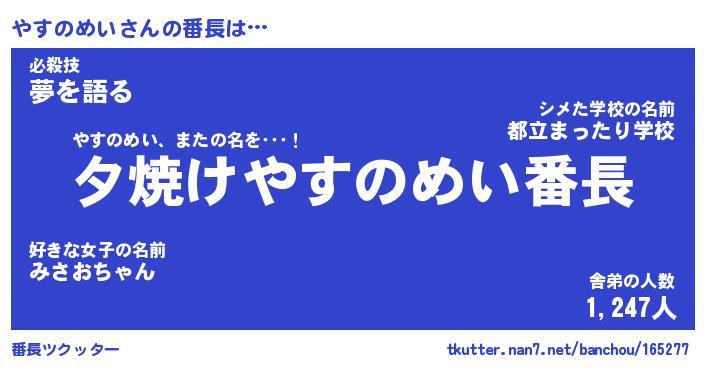 | ファンタジー風あだ名 | 『ヤスフェル』『エターナルヤスノメイー』 |