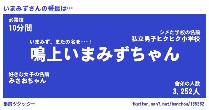 | ヒーロー風カッコイイあだ名 | 『スーパーイマミズ』『幻影騎士イマ』 |