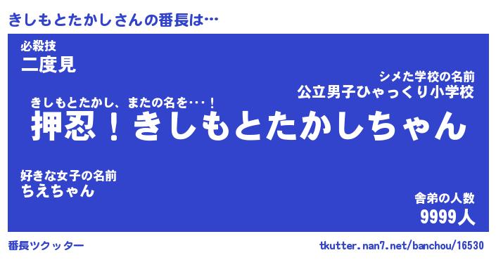 | ヒーロー風カッコイイあだ名 | 『スーパーキシモトタカシ』 |