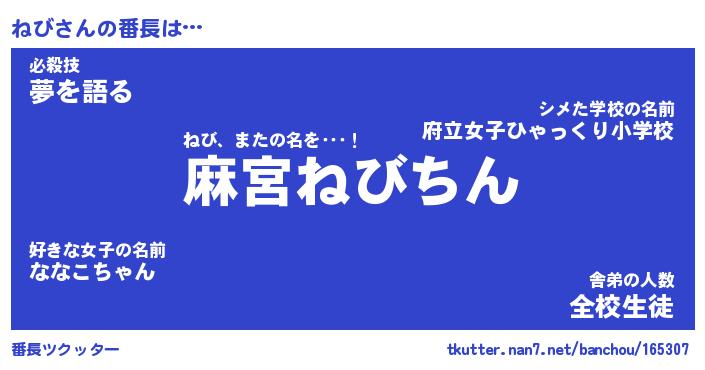 | ヒーロー風カッコイイあだ名 | 『スーパーネビ』『ウルトラねびマン』 |