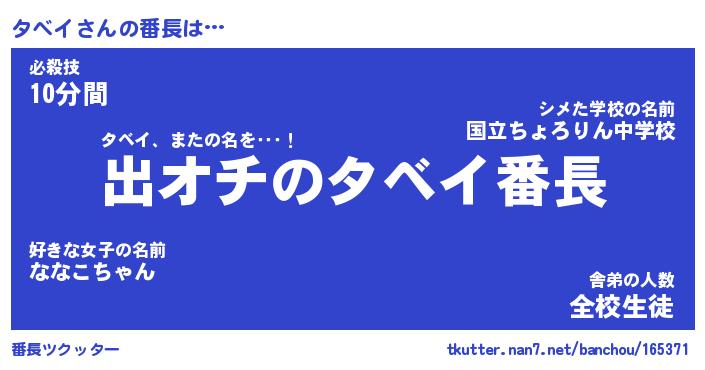 | ピコ太郎風あだ名 | 『タコ三郎』『ピタ十郎』『タベ二郎』 |