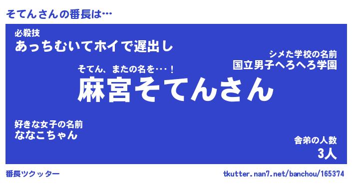 | ヒーロー風カッコイイあだ名 | 『スーパーソテン』『ウルトラそてんマン』 |