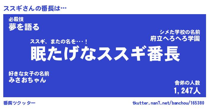 | ヘコむあだ名 | 『ススにゅー』『豆乳』『ススお』 |