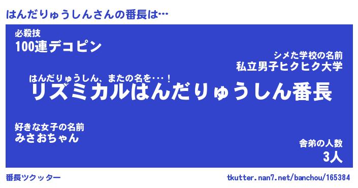 | ヘコむあだ名 | 『はんにゅー』『牛乳』『はん太郎』 |