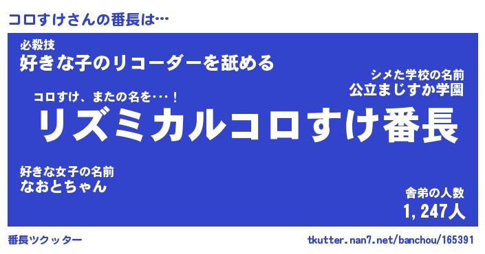 | 意味不明あだ名 | 『ペロリンコロすけ』『永久保存コロすけ』 |