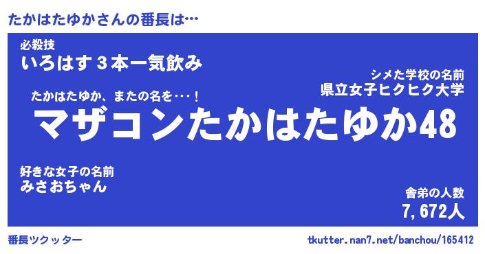 | 肩書あだ名 | 『たかはたゆか社長令嬢』 |