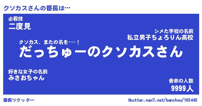 | 意味不明あだ名 | 『ペロリンクソカス』『永久保存クソカス』 |