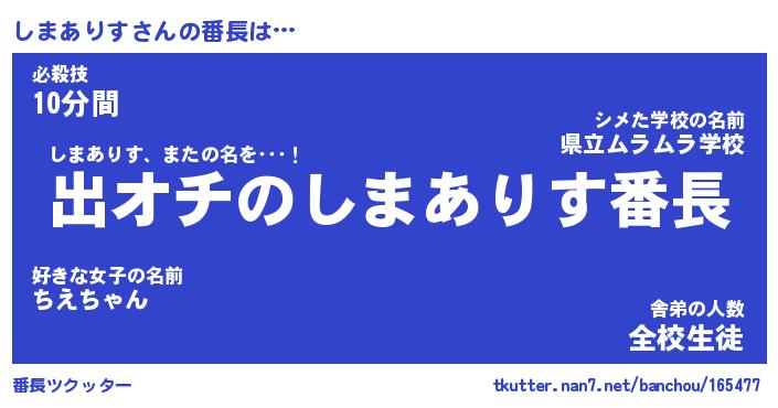 | ヒーロー風カッコイイあだ名 | 『スーパーシマアリス』『暗黒騎士シマ』 |