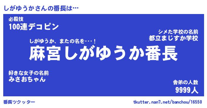 | ヒーロー風カッコイイあだ名 | 『スーパーシガユウカ』『天弓騎士シガ』 |
