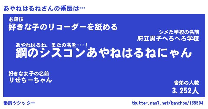 | ポケモン風あだ名 | 『アヤチュウ』『アヤネダネ』 |