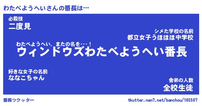 | 意味不明あだ名 | 『ペロリンわたべようへい』 |