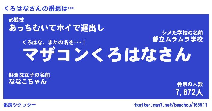 | 意味不明あだ名 | 『ペロリンくろはな』『永久保存くろはな』 |