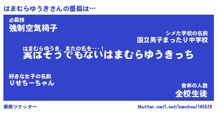 | 肩書あだ名 | 『はまむらゆうき店長』 |