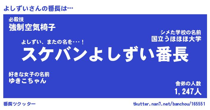 | ポケモン風あだ名 | 『ヨシチュウ』『ヨシズダネ』 |