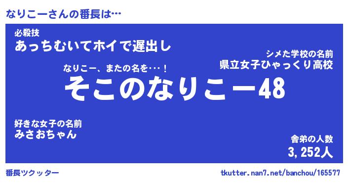 | 意味不明あだ名 | 『ペロリンなりこー』『永久保存なりこー』 |