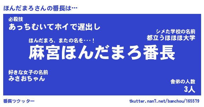 | ヘコむあだ名 | 『ほんもー』『牛乳』『ほんっ子』 |