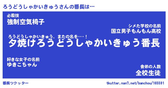 | 意味不明あだ名 | 『ペロリンろうどうしゃかいきゅう』 |