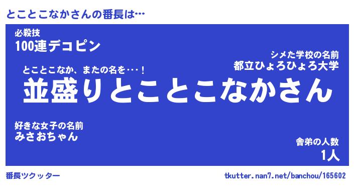 | 肩書あだ名 | 『とことこなか社長』『とことこなか班長』 |