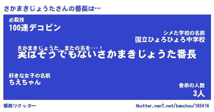 | 伝説のあだ名 | 『封印されしスナイパーさかまきじょうた』 |