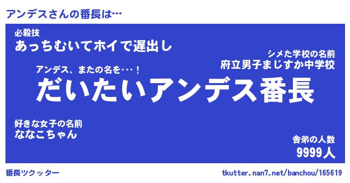 | ポケモン風あだ名 | 『アンチュウ』『アンデダネ』 |