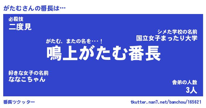 | 肩書あだ名 | 『がたむ御曹司』『がたむ総理大臣』 |