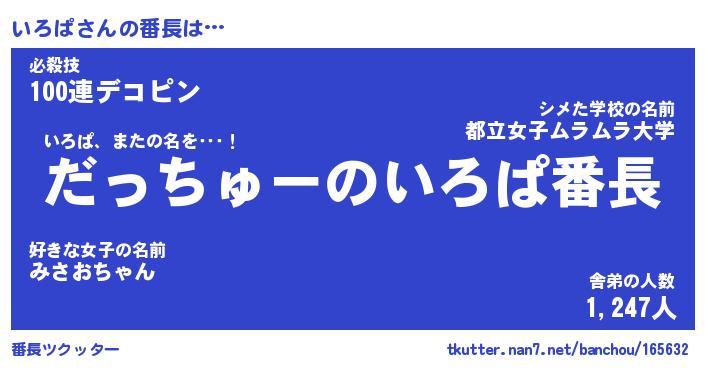 | 肩書あだ名 | 『いろぱ店長』『いろぱ大統領』 |
