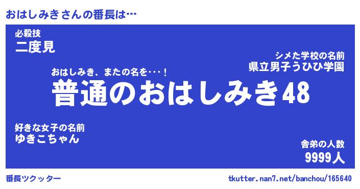 | 伝説のあだ名 | 『不死鳥のスナイパーおはしみき』 |