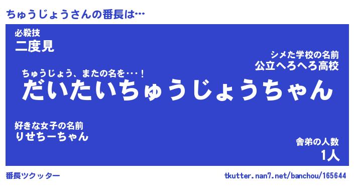 | 肩書あだ名 | 『ちゅうじょう店長』『ちゅうじょう塾長』 |