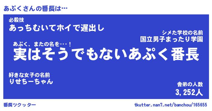 | 肩書あだ名 | 『あぷく社長』『あぷく国家主席』 |