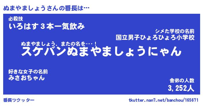 | ヘコむあだ名 | 『ぬまもー』『なまこ酢』『ぬまを』 |