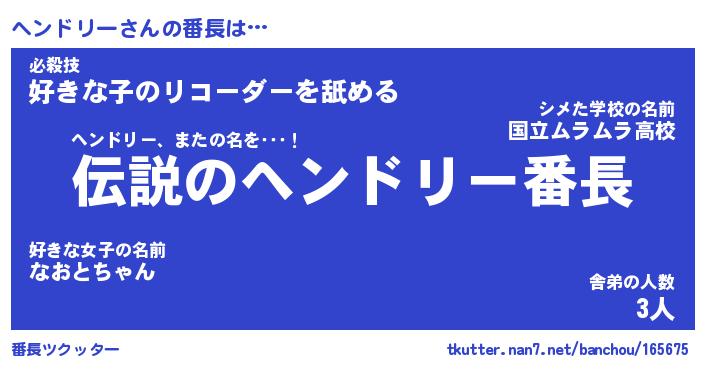| 恥ずかしいあだ名 | 『プリティーヘンドリー』『ヘンっちょ』 |