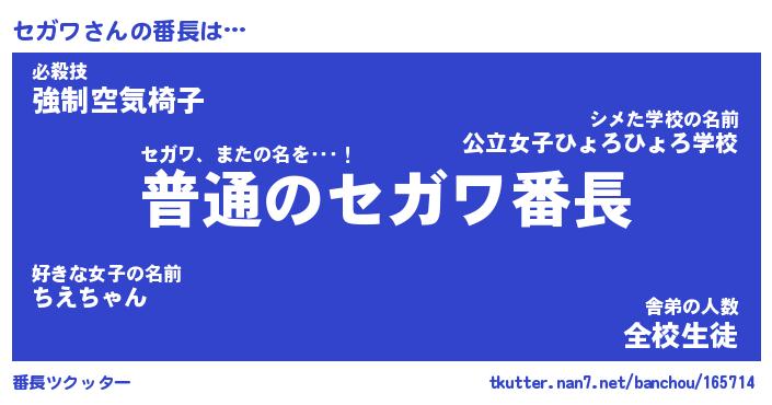 | ヒーロー風カッコイイあだ名 | 『スーパーセガワ』『ウルトラセガワマン』 |