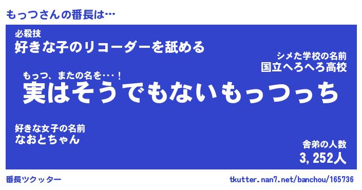 | 意味不明あだ名 | 『ペロリンもっつ』『もっつフォーエバー』 |