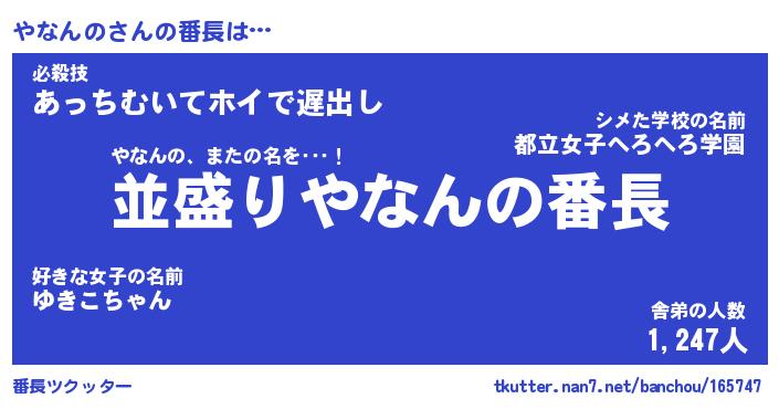 | ファンタジー風あだ名 | 『ヤナフェル』『エターナルヤナンノー』 |