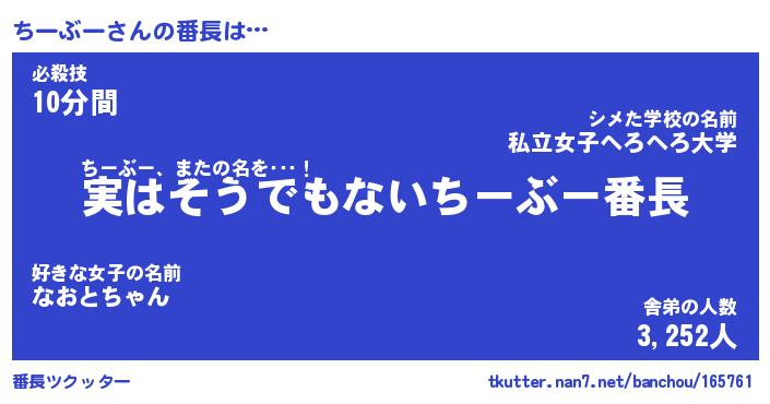 | 肩書あだ名 | 『ちーぶー御曹司』『ちーぶー総理大臣』 |