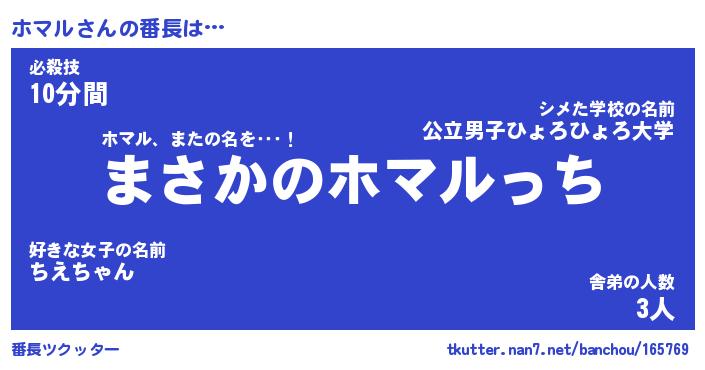 | ヒーロー風カッコイイあだ名 | 『スーパーホマル』『ウルトラホマルマン』 |