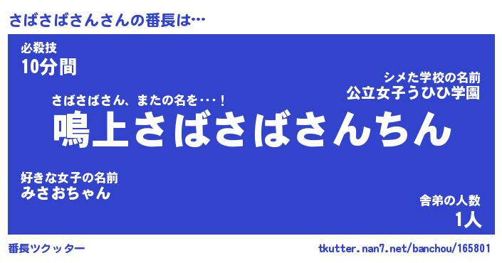 | ポケモン風あだ名 | 『サバチュウ』『サバサダネ』 |