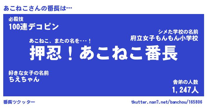 | 意味不明あだ名 | 『ペロリンあこねこ』『永久保存あこねこ』 |