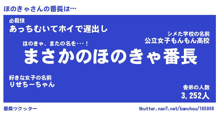 | 意味不明あだ名 | 『ペロリンほのきゃ』『永久保存ほのきゃ』 |