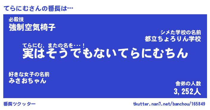 | 意味不明あだ名 | 『ペロリンてらにむ』『永久保存てらにむ』 |
