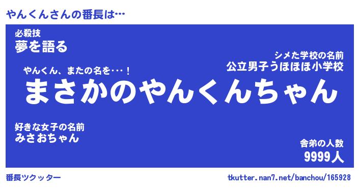 | 意味不明あだ名 | 『ペロリンやんくん』『永久保存やんくん』 |