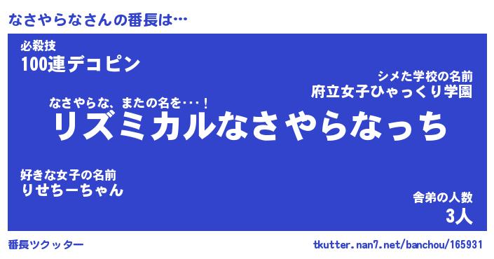 | ファンタジー風あだ名 | 『ナサフェル』『エターナルナサヤラナー』 |