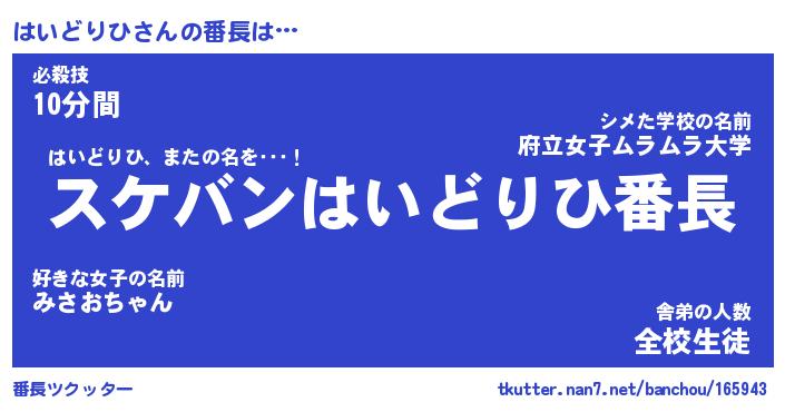| 肩書あだ名 | 『はいどりひ御曹司』『はいどりひ大統領』 |